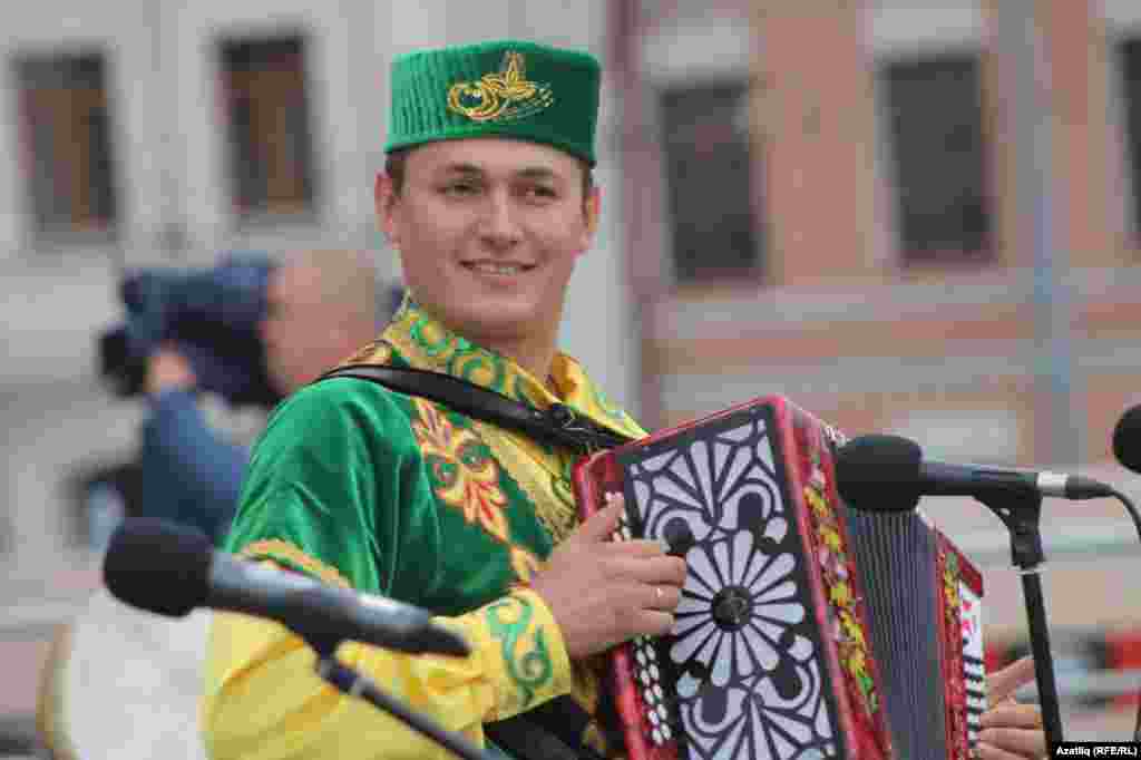 30 августа на площади перед театром Г.Камала прошел традиционный праздник "Играй, гармонь!". Шел дождь - зрителям, пришедшим к 10 утра, пришлось дожидаться начала музыкального праздника целый час. В прошлом году народу было ощутимо больше. В этот раз у театра Г.Камала не было ни одной вывески, ни одного баннера с поздравлениями с Днем Республики.