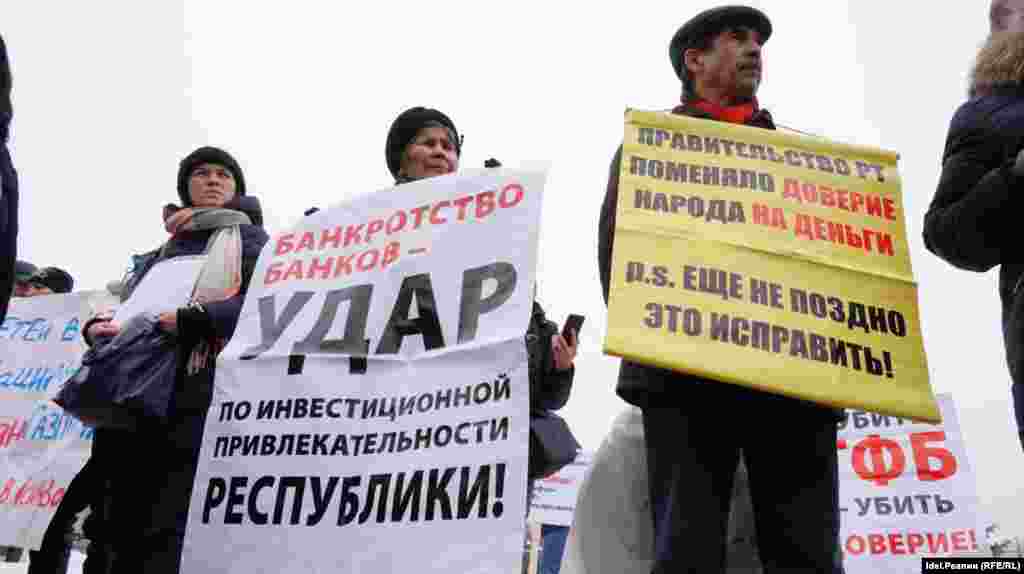 7 марта в парке Петрова в Казани прошел пикет клиентов Татфондбанка и Интехбанка. К ним присоединились обманутые дольщики и жители Осиново и Салмачи, чьи дома подлежат сносу из-за газопровода, подходящего вблизи.