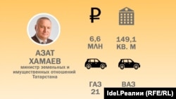 Третье место занял министр земельных и имущественных отношений Азат Хамаев, заработавший 6,6 млн рублей. Ровно столько же он декларировал год назад. У него по прежнему в собственности два автомобиля — ГАЗ-21 и ВАЗ. В этом году в аренде появилась квартира в 149,1 кв. м.
