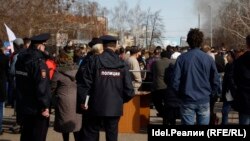 Напомним, сторонники "Открытой России" на митинге "Он нам не царь" в Набережных Челнах раздавали обращения полицейским с призывом "быть взаимно вежливыми". В тексте разъяснялись права участников митинга и перечислялись статьи уголовного кодекса, которые могут нарушить сотрудники полиции при задержании активистов. Среди них, например, ст. 286 УК РФ ("Превышение должностных полномочий"), ст. 127 УК РФ ("Незаконное лишение свободы"), ст. 126 УК РФ ("Похищение человека").
