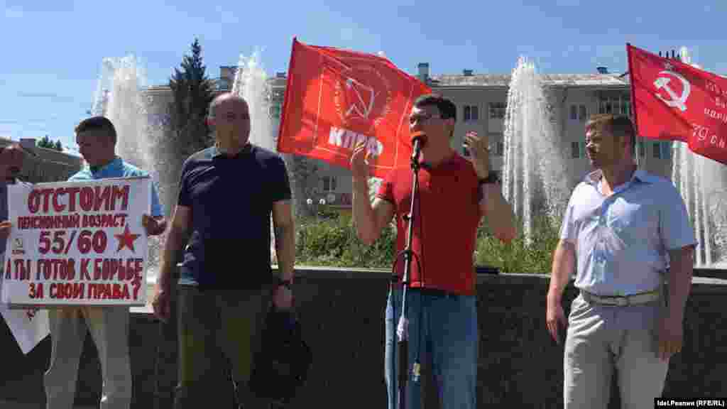 На окраине Казани — в посёлке Дербышки — татарстанское отделение КПРФ провело митинг против повышения пенсионного возраста