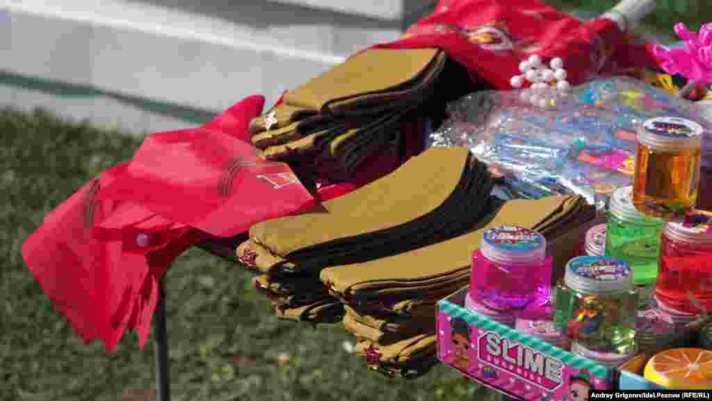Пилотки и георгиевские ленты вступают порой в довольно занятный контраст с брендовыми футболками, на которых можно разглядеть надписи типа "Italy" или "British Made" — но такой контраст здесь никого не удивляет.