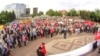 Минут за двадцать до начала площадь перед кинотеатром "Октябрь" была пустынна — стояли разрозненные кучки людей. Но ближе к началу митинга площадка стала заполняться.