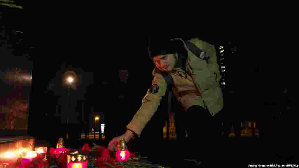 День памяти жертв политических репрессий в Казани завершился традиционным возложением цветов у памятника жертвам репрессий в Ленинском садике. В семь вечера здесь собралось около сорока участников акции.