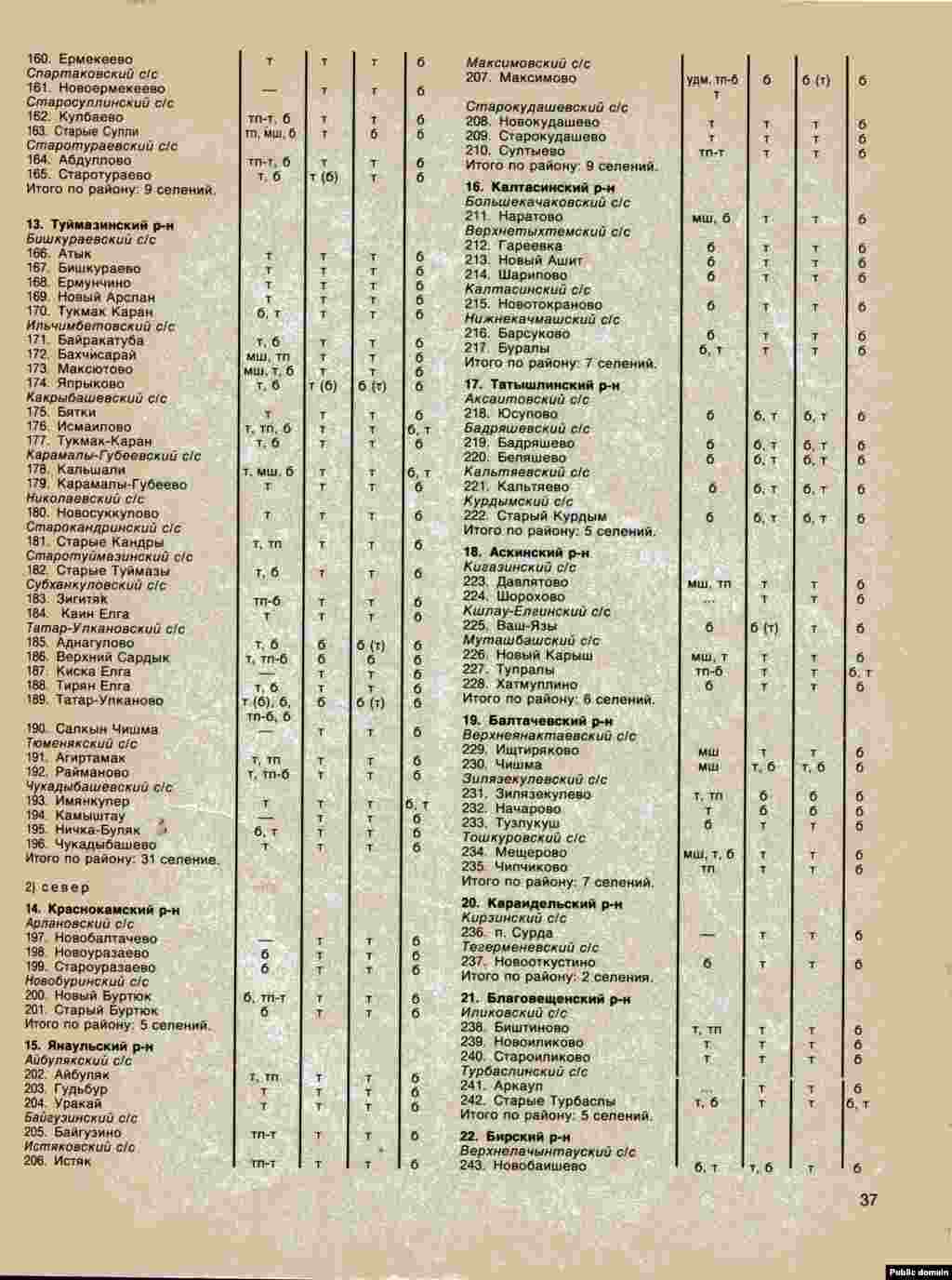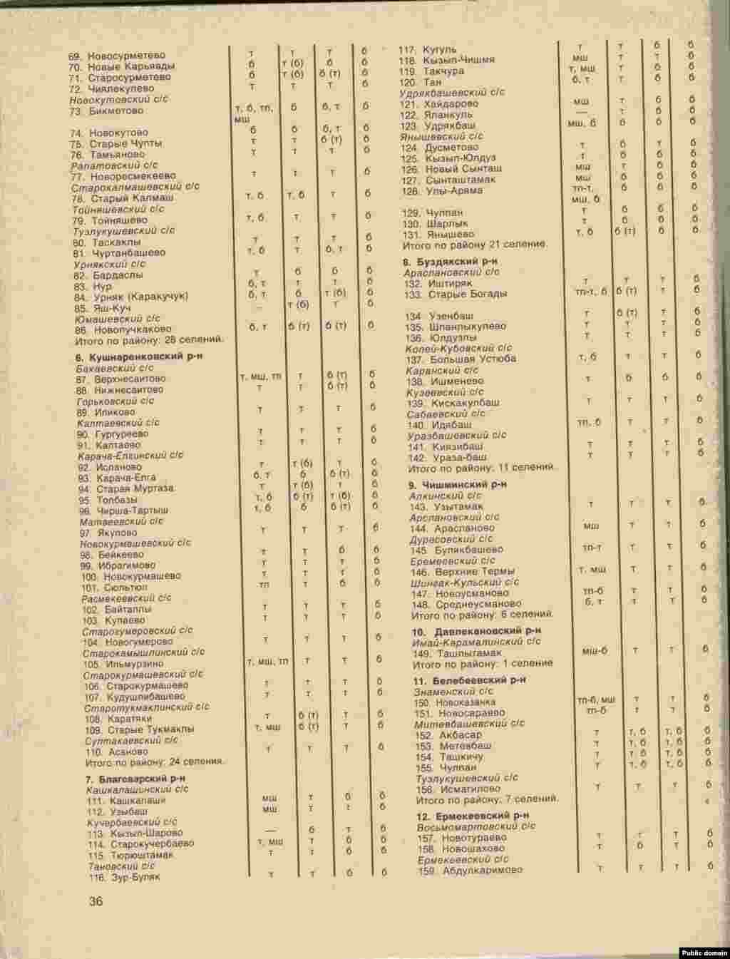 Список татарских сельских населенных пунктов Башкирской АССР, национальность жителей которых претерпела изменения по данным за 1926-1979 гг.