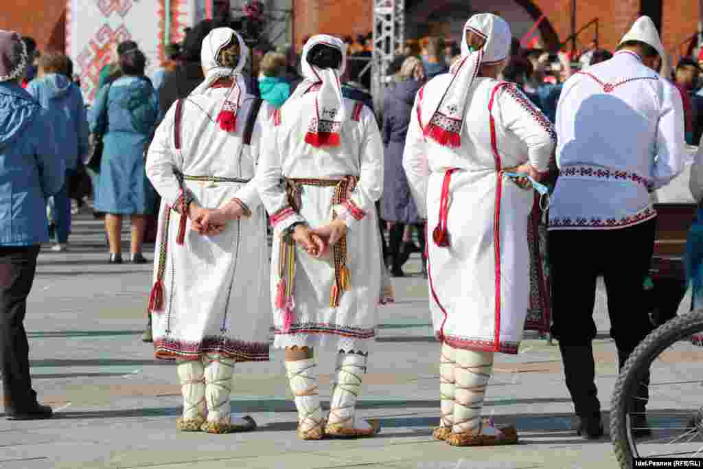 Организаторы "Пеледыш Пайрем" выдавали всем посетителям кремля одноразовые маски, обрабатывали руки входящих антисептиком. Вероятно, большая часть зрителей была в масках.
