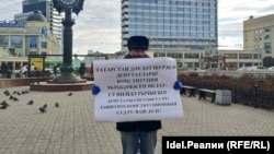 "Ликвидация Конституционного суда Татарстана — уничтожение государственности" и "Депутаты Госсовета РТ! Защитить Конституционный суд РТ ваш долг" — с такими плакатами вышел сегодня активист.
