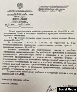 Прокуратура Башкортостана в связи с предстоящей акцией Навального 21 апреля в городах России разослала в образовательные учреждения документ, в котором говорится о "недопустимости принятия участия в несогласованных публичных мероприятиях, предусмотренной административной и уголовной ответственности за участие в подобных действиях".