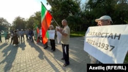 Собравшиеся стояли с плакатами: "Татарстан. 2021 = 1937", "Можно ликвидировать Всетатарский общественный центр! Татарстакий народ невозможно уничтожить", "Президент Минниханов! Почему вы не поддерживаете ВТОЦ?"
