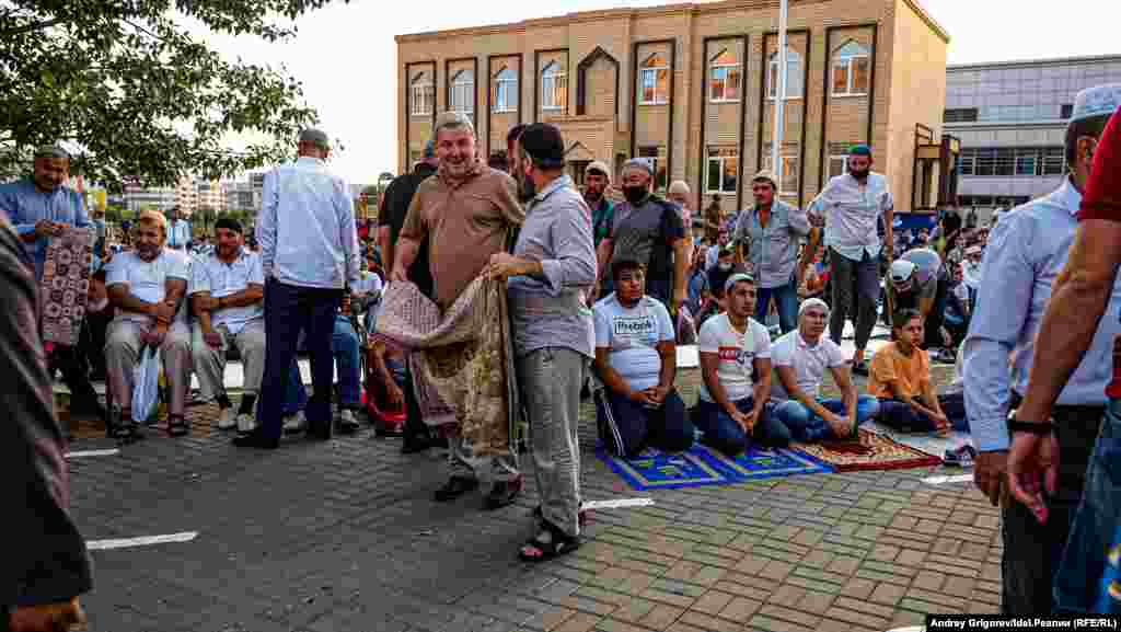 Около тысячи человек собралось на праздничный намаз по случаю Курбан-байрама во дворе казанской мечети "Гаилә" в казанском микрорайоне Азино. Из-за жестких ограничений, продиктованных пандемией коронавируса COVID-19, само здание могло вместить лишь несколько сотен человек — по этой причине имам Рустем Хайруллин решил, что все без исключения пришедшие будут молиться во дворе мечети, чтобы между верующими не было искусственного разделения. Прочтя проповедь с крыльца, а потом спустился к остальным участникам молитвы.