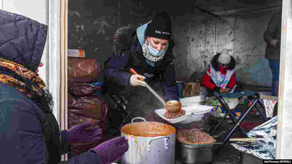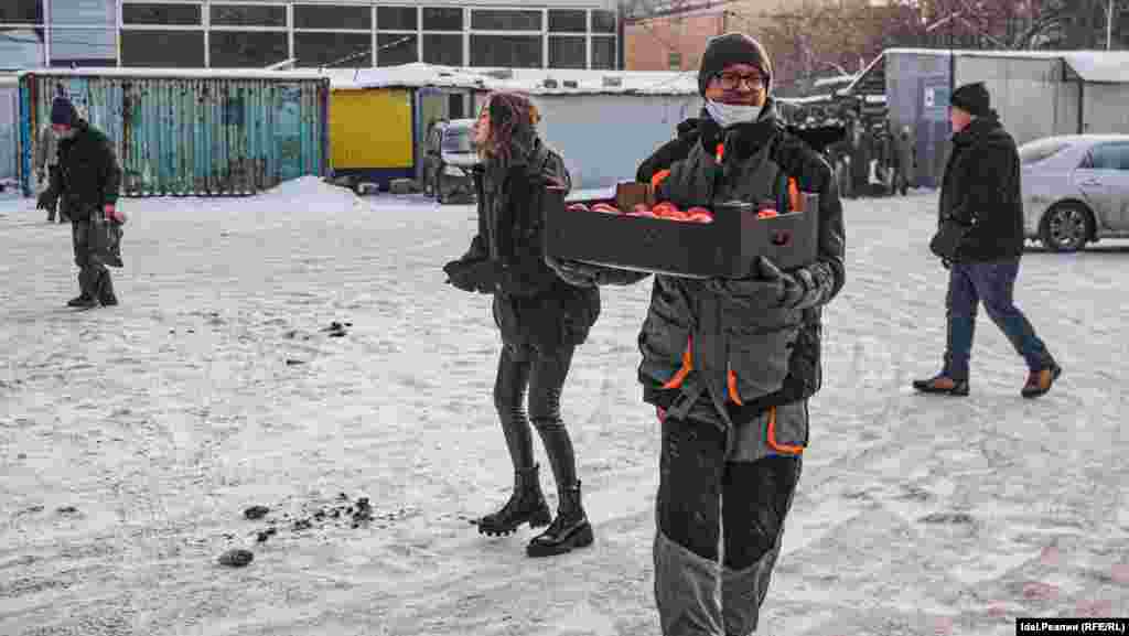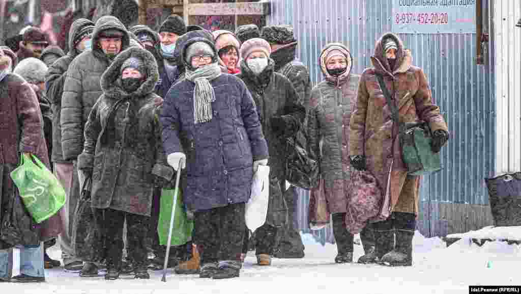 25 декабря в сильную метель корреспондент "Idel.Реалии" побывал на стоянке и заснял людей, которые приходят за бесплатной едой.