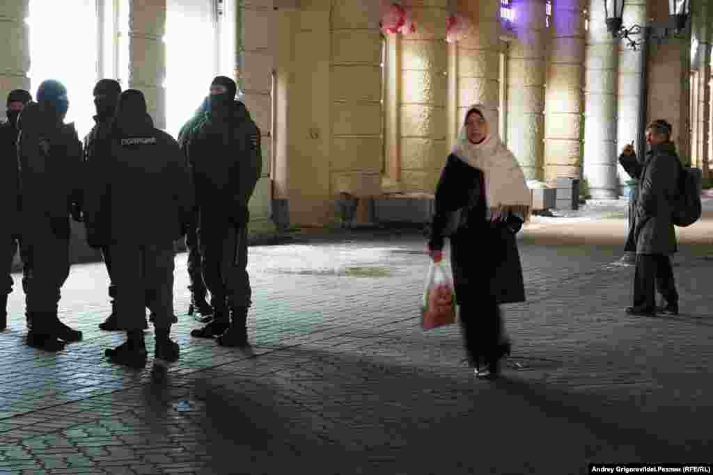 Собравшиеся хотели пройти по улице Баумана траурным маршем, держа в руках зажженные свечи и портрет, но замначальника полиции Казани Сергей Чанкин запретил им делать это, равно как и выкрикивать антивоенные лозунги под угрозой задержания. В итоге после долгого молчания под пристальным присмотром полиции собравшиеся оставили портрет, свечи и цветы у колокольни Богоявленского собора и разошлись.