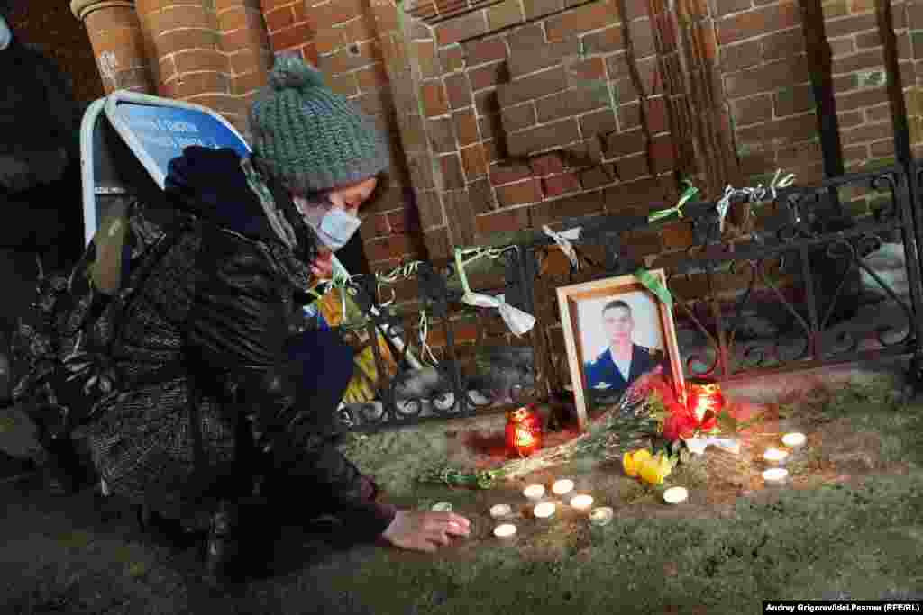 У них были цветы, свечи и портрет первого официально признанного погибшим контрактника из Татарстана — уроженца Нижнекамска Ильнура Сибгатуллина.
