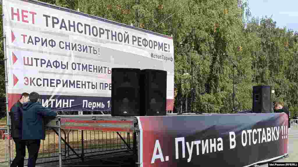 — У нас был ведущий митинга, но в последний момент, сегодня утром, ему позвонили с работы и якобы "нарисовали" смену. А еще предупредили — если выйдешь на протест, уволим. Перед митингом начались приключения с баннером "А.Путина в отставку". Никто не виноват, что у Путина-президента и Путина — начальника департамента дорог и транспорта в Перми — одинаковые фамилии. Но власти испугались. Полчаса шли споры за баннер. А в итоге мне сказали, если мы сами не демонтируем баннер, то его демонтируют в любом случае, а меня увезут в полицию, — сообщила Людмила Елтышева.