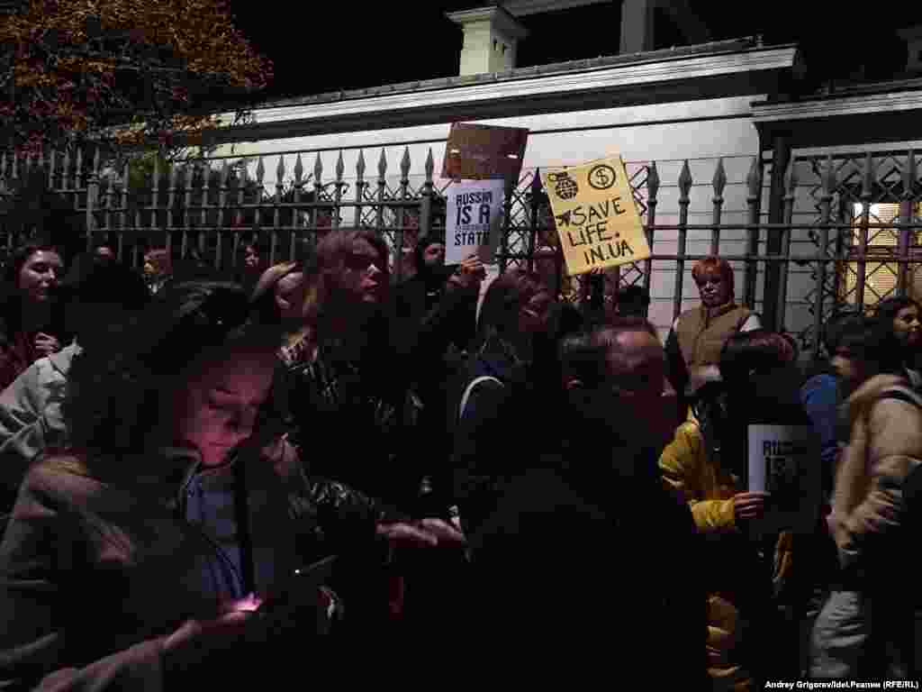 Стихийный митинг у ворот посольства РФ в Варшаве явился реакцией на ракетные удары, которые российская армия нанесла по украинским городам утром и днём 10 октября. Военные били по жилым районам и объектам инфраструктуры. Президент РФ Владимир Путин и российские пропагандисты назвали это "жёстким ответом" за субботний взрыв на Крымском мосту. По оценкам корреспондента "Idel.Реалии", стихийная акция собрала более тысячи участников, в основном украинцев и поляков. Количество участников было настолько большим, что полиции пришлось перекрыть с двух сторон улицу для автомобильного движения. Большинство людей держало в руках плакаты, в которых Россия называлась террористическим государством.