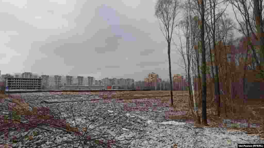 Сейчас речь идёт о строительстве на месте вырубленных 3 га леса нового ЖК. Ни чиновников из мэрии Казани, ни застройщика ГК "Эталон" не смутил тот факт, что именно в этой части рощи росли краснокнижные растения, а воздух здесь оказался наименее загрязненным диоксидом азота. Теперь, понятное дело, вся эта роскошь осталась в прошлом. В ноябре лес вырубали ударными темпами, пни выкорчевывали, а стволы деревьев, по словам очевидцев, сразу же измельчали. Делалось это, очевидно, для того, чтобы истинный размер ущерба невозможно было установить. Фото с места уничтожения рощи сделали, по просьбе корреспондента "Idel.Реалии", местные активисты. Поле, которое читатели могут наблюдать на большинстве снимков, ещё в октябре было густым пойменным лесом, в котором гнездились многочисленные птицы. Желто-красное здание на горизонте — магазин строительных товаров "Мегастрой". Также на нескольких снимках в кадр попадает полоска коричневого забора. Он огороживает участок у проезжей части, на котором застройщик развернул свою деятельность изначально.