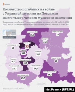 В марте 2022 года, через несколько недель после начала полномасштабной войны России против Украины, "Idel.Реалии" начали вести свой собственный подсчет погибших из регионов Поволжья. На 5 января мы смогли подтвердить 2 280 погибших.