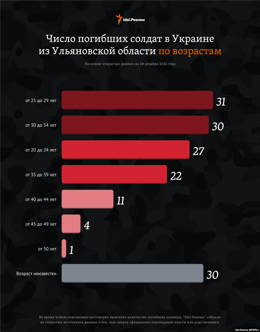 Большинство погибших из Ульяновской области были в возрасте до 40 лет. 61 ребенок остался без отца