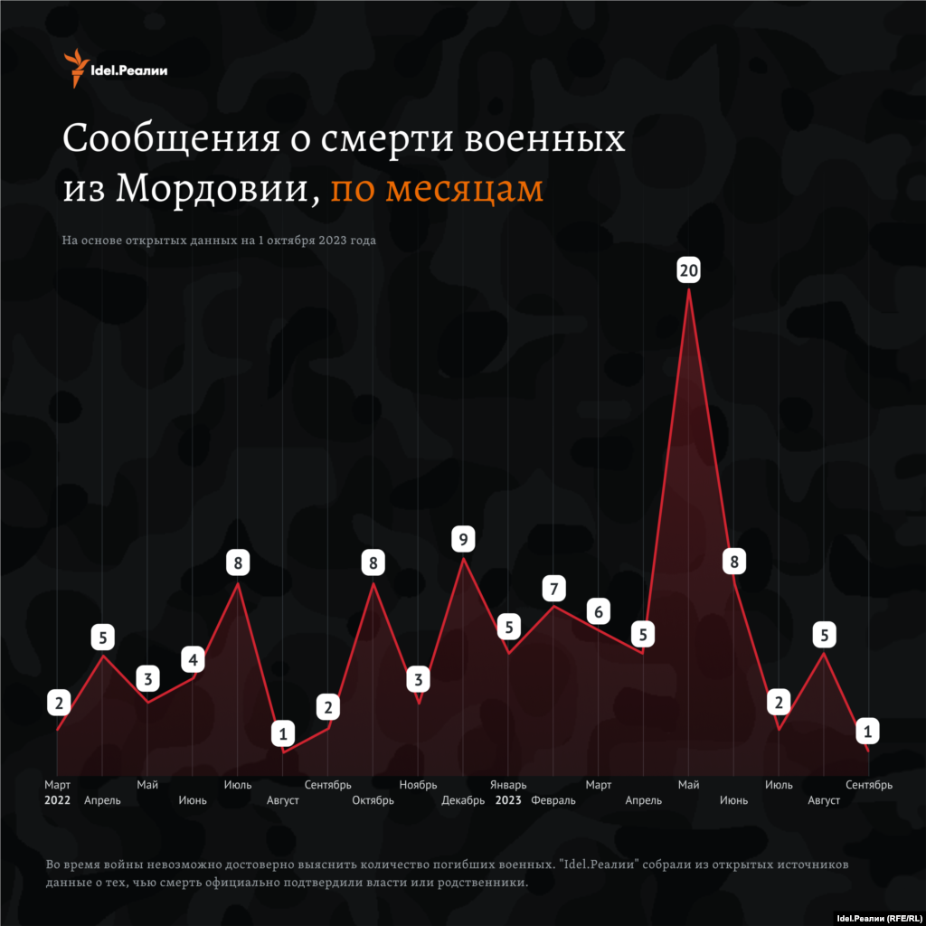 Чаще всего за все время проведения войны сообщения о смерти поступали в мае этого года — 20 случаев.