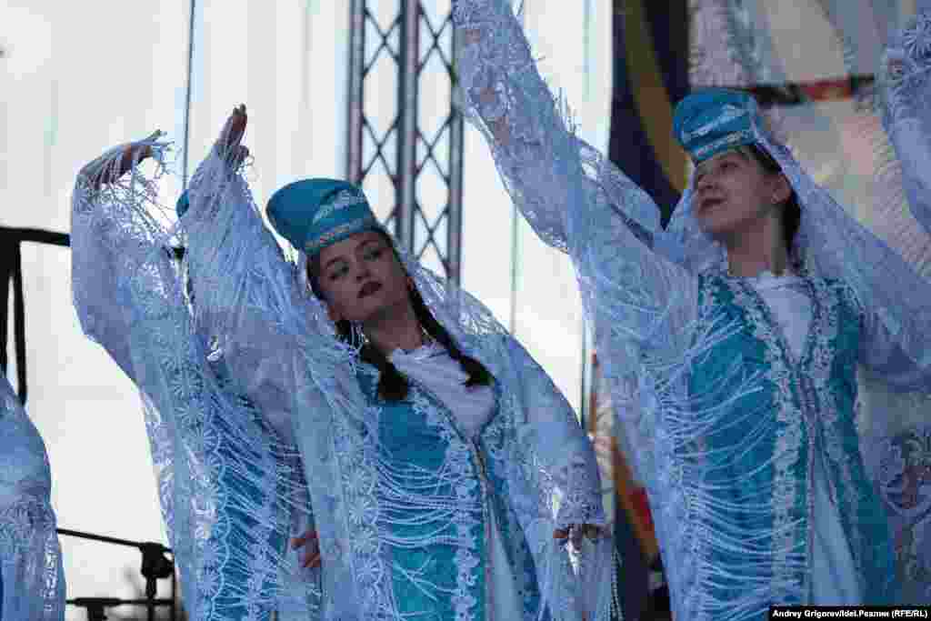 Нет ни драки с помощью мешков, ни традиционной татарской борьбы куреш, победитель в которой получает в качестве главного приза живого барана. Единственный барашек, которого я заметил, оказался деревянной скульптуркой у сцены.