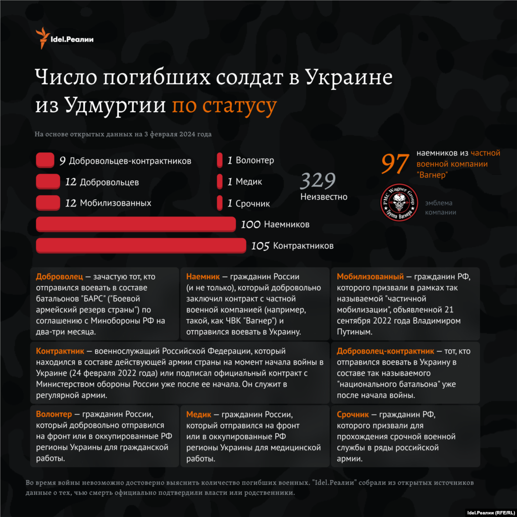 "Idel.Реалии" собрали всю известную на данный момент информацию о погибших на войне в Украине уроженцах Удмуртии — возраст, звания, районы, образование, дети, медали и др.