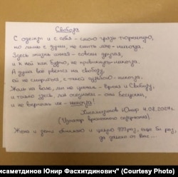 Из письма Юнира Хисаметдинова жене из СИЗО, опубликованного 30 мая 2024 года: