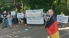 В воскресенье днём, 9 марта, представитель немецкой диаспоры провёл одиночный пикет у посольства Германии в Москве. Как минимум один человек снимал его при этом со стороны. Мужчина скрывал своё лицо за плакатом со слоганом "Германия обманула российских немцев" (текст был написан на немецком).